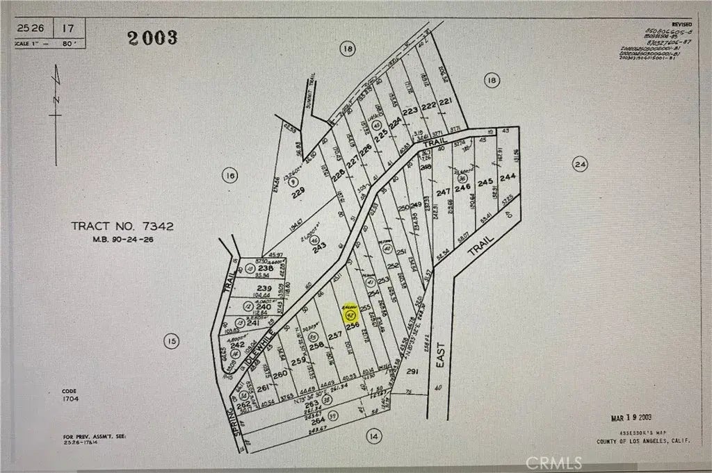 Up-slope lot. Go up between 12104 Spring Trail, Slymar, CA 91342 and 12068 Spring Trail, Slymar CA 91342. Below to address 12107 East Trail, Kagel Canyon CA 91342