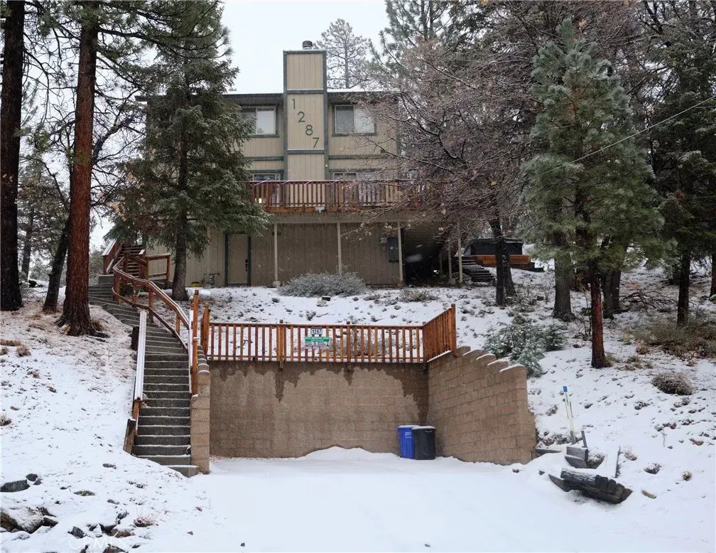 24,532 square foot lot ! At the end of a quiet cut-de-sac. 4 bedrooms, 3 full bathrooms, many trees around, central heating, a/c in 2 rooms, large spa, gas fire pit, gas bar-b-q, newly refinished deck, internet controlled e-lock, new 200A main electric panel with generator hookup, enclosed build-up, new induction cooktop, newer G.E. Monogram Stainless fridge, additional fridge in laundry area, dishwasher, New LG washer/drier stackable laundry center, silent exhaust fan in 2 bedrooms, gas heater in master bedroom, wood fire place with gas starter in living room, 2 TV sets, 2 parking spaces (4 total). This property have been a very successful holiday rental. Lot line bordering the national forest, and hiking trails, Minutes from Bear Mountain ski slopes, and the lake.. Ideal location to escape, and breath fresh mountain air. Beautiful home located in desirable upper Moonridge. Exceptional combination of location and living quality. The view is Stunning! It is exceptional. Fully furnished, everything included.