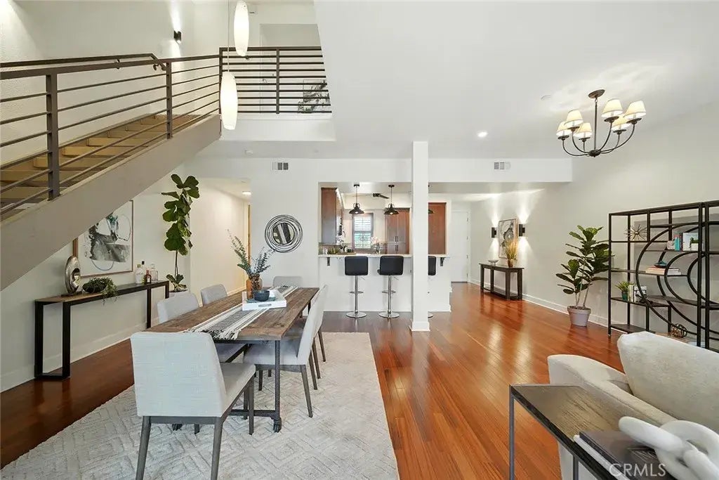 Experience sophisticated living at desirable City Place Lofts in this 2-bedroom / 1.5-bathroom residence located in the East Village Arts District. Spanning 1,770 square feet, this top-floor unit with no neighbors above, offers an additional level of security, superior views, and open-concept living allowing the flexibility to create a custom-living experience. The lower lower level features living and dining areas with 9 ft. ceilings, hardwood floors, and expansive near windows allowing an abundance of natural light and showcasing downtown views. Floor-to-ceiling sliding glass doors open to a private patio, perfect for relaxing, outdoor grilling, and dining. The kitchen features timeless solid-surface countertops with a breakfast bar, attractive tile backsplash, stainless steel appliances, and elegant wood cabinetry. The first floor is completed with a laundry room equipped with a washer and dryer, and a convenient powder room. Upstairs, brand-new carpeting has been installed throughout the bedrooms and hallway, and the generously-sized primary bedroom offers ample room for a work-space, dressing area, retreat, etc. The fully permitted second bedroom has recently been reconfigured and features a brand-new closet with organizers, updated electrical, and contemporary lighting. The primary bathroom is spacious with a sunk-in tub, separate shower, dual sinks, private water closet, and plenty of cabinetry. The unit has been freshly painted throughout, has central heating and air, and includes two dedicated side-by-side parking spaces. Residents enjoy amenities such as a well-e