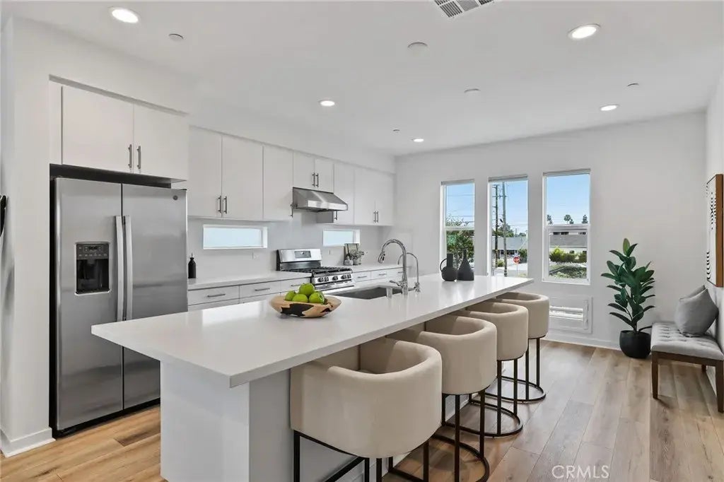 Welcome to Twenty8 Walk, a gated community of detached single-family homes in the heart of Costa Mesa. This residence, located in the communitys most desirable spot with a highly sought-after floor plan, offers a modern lifestyle and exceptional comfort. The main level features a spacious bedroom with private backyard patio access, a full bathroom, and an attached two-car garage with epoxy flooring. The second level boasts a bright, open-concept layout with a stunning kitchen, large island, stainless steel appliances, an enclosed balcony, a powder room, and shutters throughout. The top floor includes two bedrooms connected by a Jack-and-Jill bathroom, plus a primary suite with dual vanity, walk-in shower, and walk-in closet. Ideally situated near top schools, dining, shopping, golf courses, and the beaches of Newport Beach and Costa Mesa, this home also features owned solar panels and a tankless water heater.
