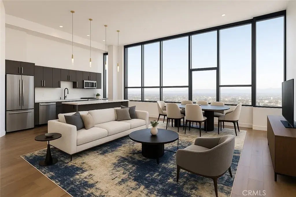 Exceptional Downtown Living with Breathtaking Views!! Presenting an unparalleled opportunity to own a luxurious residence in the heart of Downtown Los Angeles. This remarkable 18th-floor NE corner unit offers sweeping panoramic views of the iconic DTLA skyline from every angle, delivering an extraordinary living experience. This spacious and bright 2-bedroom, 2-bathroom home features an open-concept modern floor plan with soaring ceilings that reach approximately 18 feet, creating an inviting atmosphere. The master bedroom boasts an impressively sized walk-in closet, complemented by two large, elegantly remodeled full bathrooms equipped with marble finishes, tiled shower floors, sophisticated vanity accent lighting, and ample storage space. The contemporary kitchen is fitted with European-style cabinetry, quartz countertops, and high-end stainless-steel appliances, making it a culinary enthusiasts dream. Motorized blinds enhance privacy while the in-unit washer and dryer add convenience. Residents can indulge in a wealth of luxurious amenities including a sky deck with a large pool and spa, private cabanas, BBQ areas, and a wet bar for exceptional entertaining. Additional features include 24-hour surveillance, onsite property management, two assigned parking spaces, a fitness center, a private movie theater, and a meeting room. Located within walking distance of fine dining, cultural venues, musical theaters, art museums, and various sporting events, this residence embodies the perfect blend of privacy, luxury, and convenience. Do not miss the chance to experience this exqu