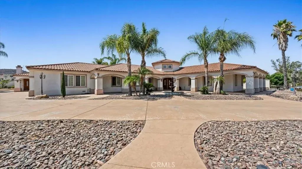 29935 Maxine Lane Elegant Spanish Hacienda Estate on 2.14 Acres Exquisite Spanish Hacienda estate on 2.14 fully fenced, gated acres with over 100 mature trees, lush landscaping, and sweeping views of Idyllwild and Big Bear. Meticulously maintained and built with exceptional craftsmanship, this private retreat offers refined living with versatile spaces. The main residence features custom tile inlays, a formal living room with tray ceilings, dual ceiling fans, and a brick-accented fireplace. The chefs kitchen features granite countertops, built-in double ovens, a beverage cooler, a vent hood, a custom tile medallion, and a walk-in pantry. A sunny breakfast nook and formal dining room provide multiple entertaining options. The primary suite offers a private sitting area and a spa-inspired ensuite bath. The guest casita spans over 900 sq. ft. and features 2 bedrooms, 1 bath, a full kitchen, laundry room, and private entranceideal for extended family or guests, or even rental opportunities. Outdoor amenities include a custom in-ground spa/grotto with rock waterfall, 5-car garage, RV parking, dual gated entrances, automatic irrigation, and a fully paid 50-panel solar system for energy efficiency. Water resources include two 2,500-gallon storage tanks, with an automatic well pumping system, perfect for extensive crop planting, greenhouse cultivation, or enhanced landscaping. The property is also zoned for equestrian use, offering the potential for horse facilities. A rare opportunity to own a beautifully maintained hacienda estate offering privacy, space, agricultural potential,