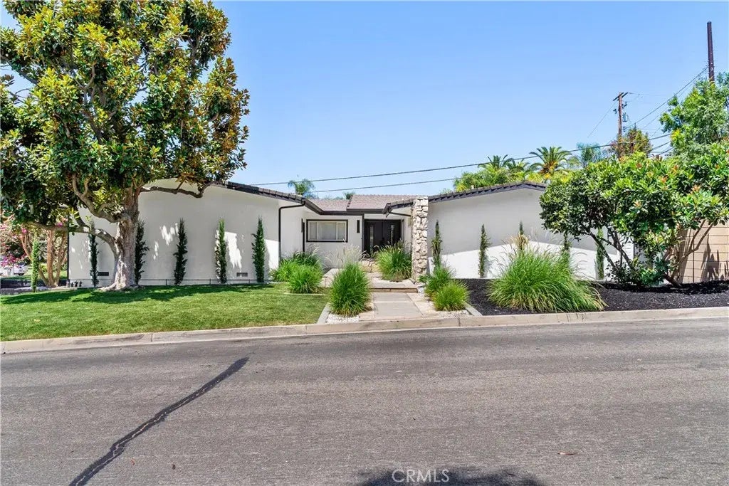 Beautifully updated single-level home on a private corner lot in the prestigious Los Coyotes Country Club neighborhood. This turn-key residence features an open floor plan with abundant natural light, sleek vinyl flooring, recessed lighting, and a striking Palos Verdes River Rock fireplace. The gourmet kitchen features a waterfall quartz island, custom European cabinetry, wine fridge, and ample storage. Offering 4 spacious bedrooms including dual primary suites, plus a flexible office/5th bedroom, this home is designed for modern living. Bathrooms showcase spa-like finishes with floating vanities, designer tile, and a soaking tub in the vaulted-ceiling primary retreat. Outdoors, enjoy newly landscaped grounds, new sprinklers, and multiple spaces for entertaining. The oversized finished garage with epoxy flooring offers room for 2 cars plus a golf cart. Additional upgrades include full plumbing re-pipe and modernized systems throughout. Just minutes from Los Coyotes Country Club, top-rated schools, shopping, dining, and freeway access, this Buena Park gem blends luxury, comfort, and convenience in one of the areas most desirable communities.