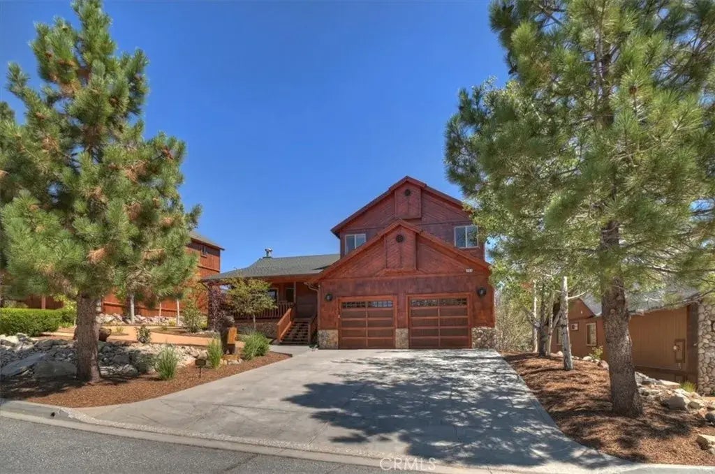 Experience the ultimate Big Bear lifestyle in this updated Castle Glen estates home backing to eagle preserve ~ Designed for comfort and style, this property offers a rare blend of privacy, luxury and mountain charm. Step into the open-concept great room featuring tongue-and-groove pine ceilings, a stunning rock fireplace, and plenty of space to gather. The kitchen is ideal for entertaining, with stainless steel appliances (updated in 2017), granite countertops, knotty pine cabinets, and center island. This spacious home includes four bedrooms with two en suite layouts providing ample space to sleep a crowd. Upstairs, the primary suite boasts a spa-inspired bathroom and private balcony to enjoy the crisp mountain mornings. This home is equipped with air conditioning as well as central heat (upgraded in 2024) to ensure comfort throughout the seasons. Other upgrades include new flooring (2018), new water filtration system (2024), new exterior paint (2024), and professional landscaping (2025). You're going to love the expansive back deck, perfect for barbecues and gatherings, plus a cozy fire pit for relaxing in the evenings. The oversized two-car garage adds functionality and storage. Just minutes from skiing, Big Bear Lake, hiking trails, golf, and The Village, this property is perfect as a full-time home, or vacation retreat and is located in a short term rental friendly neighborhood.