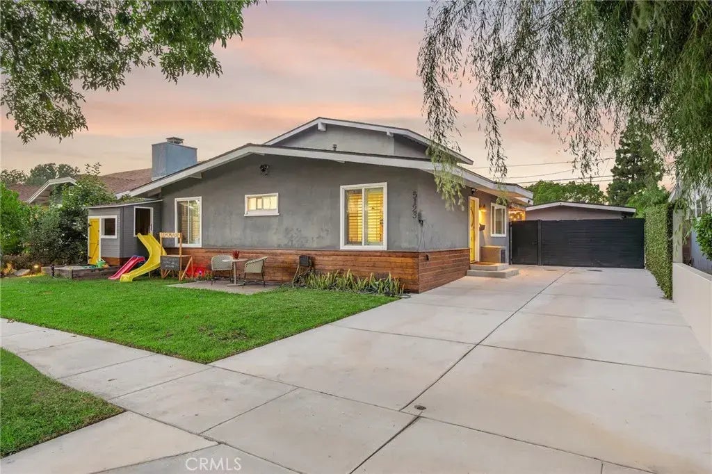 Welcome to 5123 Coralite, an exceptionally spacious and family friendly example of suburban living in a highly desirable neighborhood of Long Beach. Greeted by the matching kids playhouse in the well kept front yard, you make your way down the long private driveway to the matching yellow front door with all you could ask for just steps inside. Once you enter, you'll instantly take in the open concept living space with a spacious dining room to your right, a renovated living room in front of you, and an open concept kitchen to the left which makes for an ideal entertaining and congregating space alike. Just beyond the sliding barn door from the living room landing are two downstairs bedrooms accompanied by a recently renovated full bathroom. Making your way upstairs to the primary en suite, the first thing you may notice is the impressive, vibrant natural light which pairs well with the vaulted ceilings and extra space for a home office. The primary en suite offers room for more than just one, with a walk-in shower, dual vanity and freshly updated finishes in recent years. As if the home itself wasn't enough, you can easily make your way back down through the living room to your custom backyard with everything and anything one may need for those staycations on any given Saturday. With a custom pool and safety netting, low maintenance turf, a built in retractable awning off of the detached two car garage and an outdoor sauna, the only thing missing is the outdoor dinner parties. Fortunately, the custom built overhang off of the driveway behind the privacy gate is draped in st