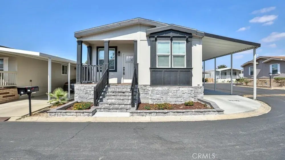 A Fresh Start Awaits You in Colony Cove! This 2024 Skyline double-wide manufactured home is ready to welcome you. Tucked away in one of the quieter areas of Colony Cove Mobile Estates, a rent-controlled 55+ senior community, this home offers both peace and comfort. Inside, youll find a bright and open floor plan with 3 bedrooms and 2 bathrooms. Wide-plank laminate floors run throughout, giving the space a light, modern feel. The kitchen is the heart of the homeperfect for cooking and gatheringwith a big quartz island, quartz countertops, shaker-style cabinets (including a pull-out trash bin), and stainless steel Whirlpool appliances. Other thoughtful touches include central air conditioning, double-paned windows that let the sunshine in, and a roomy laundry area with extra storage. The primary bedroom is your personal retreat, featuring a large walk-in closet and an en-suite bathroom with dual sinks and a walk-in shower. Step outside to enjoy a welcoming front porch and a charming stone-accented exterior. Youll also have covered parking for three cars plus a handy storage shed. Living at Colony Cove means more than just a homeits a lifestyle! The community offers resort-style amenities like an Olympic-size pool, jacuzzi, sauna, fitness center, and more. Its a wonderful place to settle in and feel at home. Come see for yourself why Colony Cove is such a special communitythis new home is waiting for you!