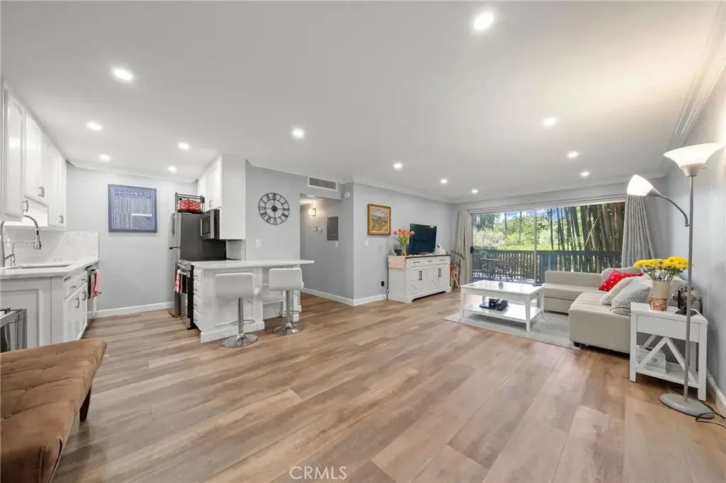 Prime location in Stoneybrook Villas with a greenbelt and pool view! Completely remodeled in 2021 including upgraded kitchen with quartz counters and custom tile backsplash, over-sized sink with commercial grade faucet, stainless steel appliances (refrigerator included in sale,) microwave/hood, and more. Upgraded bathroom includes custom glass door, walk-in shower with beautiful tile surround, quartz counter, new sink and faucet, and a bluetooth speaker/fan with optional colored lighting feature. Other features include beautiful vinyl laminate plank flooring throughout, recessed lighting throughout, crown molding, upgraded electrical panel, premium sized balcony deck, and coveted two parking spaces! Close (a few minutes bike or car ride) to CSULB, Recreation Park, Belmont Shores, 2nd St Shopping, Alamitos Bay, VA Hospital, and super close to the Orange County Beaches!