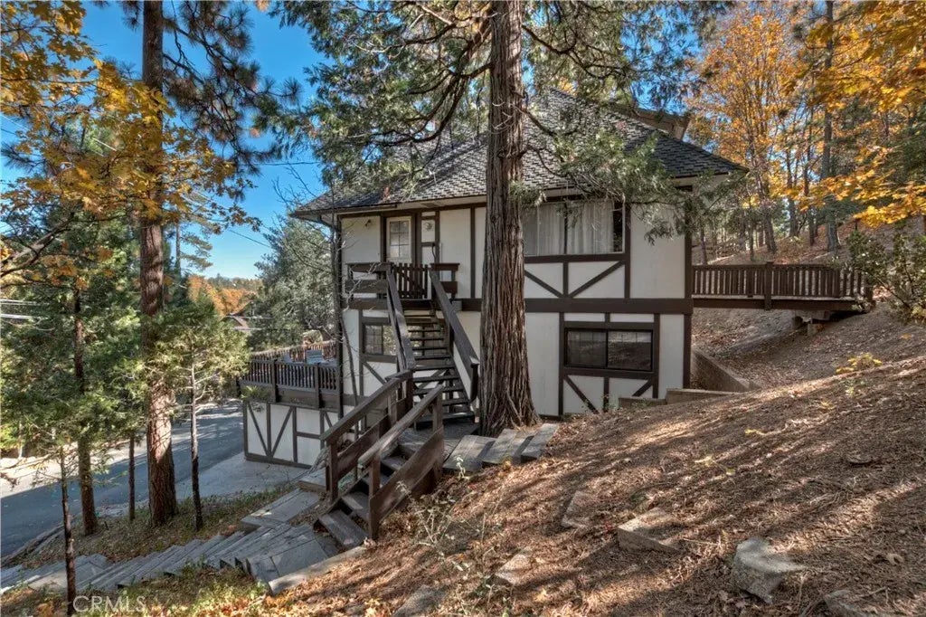 Welcome to Your Dream Lake House Retreat in the highly sought-after North Bay neighborhood of Lake Arrowhead! This charming home is positioned just across the street from Arrowhead Lake Association trail access, a great starting point for a hike on the lake and weekend get-away! It offers stunning winter lake views and outdoor spaces perfect for sunny summer days. Expansive decks invite you to relax and take in the year-round beauty of this gorgeous mountain town. Inside, experience the perfect blend of timeless charm and modern luxury. Original custom woodwork brings a warm, inviting character to every room, such as updated bathrooms and laundry featuring premium tile & glass, and custom fixtures throughout. Vaulted ceilings and exposed wood beams create a spacious yet cozy atmosphere, with walls of windows that frame serene mountain views. Evenings are perfect by the fireplace or at the full bar, while a separate lounge area offers a sophisticated space for media, card games, or a casual tasting night. The upstairs includes a spacious guest room with a large storage closetideal for future expansion or customization. The primary is tranquil and opens to the lower deck for an easy stay. Whether youre looking for a cozy family retreat or a stunning space to entertain, this home strikes the ideal balance between rustic tradition and upscale comfort. Make your lakeside dream a reality! Dont miss this chance to own a true Lake Arrowhead lakeside dream in one of the most desirable neighborhoodsschedule your viewing today!