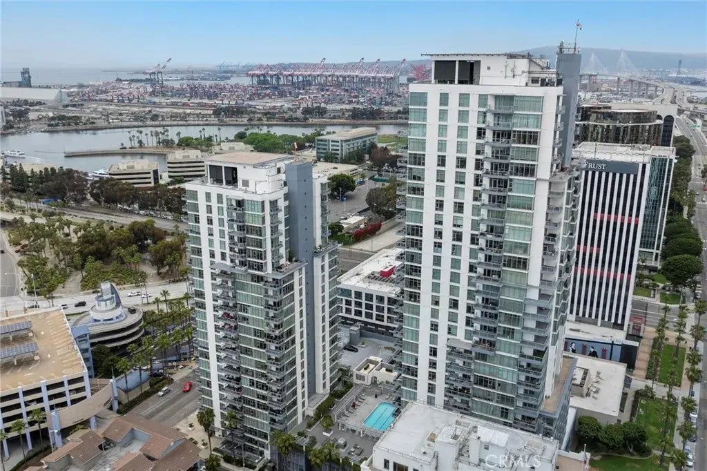 Welcome to West Ocean Towers the pinnacle of urban luxury living in the heart of Downtown Long Beach. This stunning corner unit seamlessly blends modern design with upscale comfort and convenience. Featuring expansive floor-to-ceiling windows, the home is bathed in natural light and offers breathtaking panoramic city views. Boasting 2 spacious bedrooms and 2 bathrooms, the open-concept layout includes a large gourmet kitchen equipped with stainless steel appliances, wood cabinetry, granite countertops, and a convenient breakfast nook. The primary suite offers generous closet space and a beautifully appointed double-sink bathroom. Relax or entertain in the airy living room or step out onto the oversized balcony to enjoy the ocean breeze. Throughout the unit, you'll find a sophisticated mix of hardwood flooring, porcelain tile, and plush carpet that creates both elegance and comfort. Additional features include: In-unit washer and dryer, Central air and heating, 2 assigned side-by-side parking spaces. West Ocean Towers provides a full suite of resort-style amenities, including: 24-hour concierge and on-site management, Business center and guest accommodations, Pool, spa, sauna, and outdoor fireplace with seating areas, large and small fitness centers plus a yoga room, Club room with a full kitchen, billiards/library room, multiple resident lounges and BBQ areas, climate-controlled wine storage and much more. Perfectly situated, this incredible unit is just steps from the Marina, The Pike, Shoreline Village, Convention and Performing Arts Centers, Aquarium of the Pacific, Que
