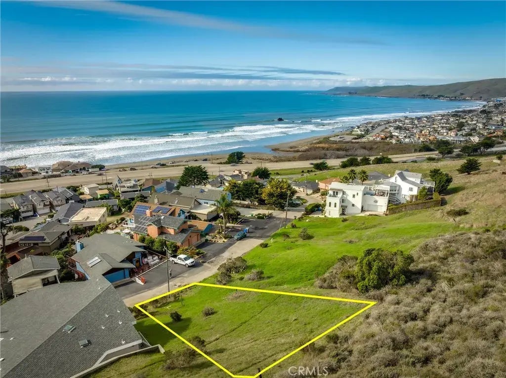 This large 6,100 sq. ft. upslope lot has remarkable views extending from north of the Cayucos Pier all the way to Morro Bay. The county has previously approved construction on this lot of a large house over 3,000 sq. ft, and in 2023 approved construction of a smaller three-story 1,781 sq. ft. house with a rooftop deck, that is featured in this listing. This lot is just 3/4 of a mile south of downtown Cayucos. Located on the upper street of a quiet neighborhood, this lot backs up to beautiful hillsides and open land that is unlikely to be developed in the future -- offering more privacy, serenity and wider costal views than most lots or homes in downtown Cayucos.