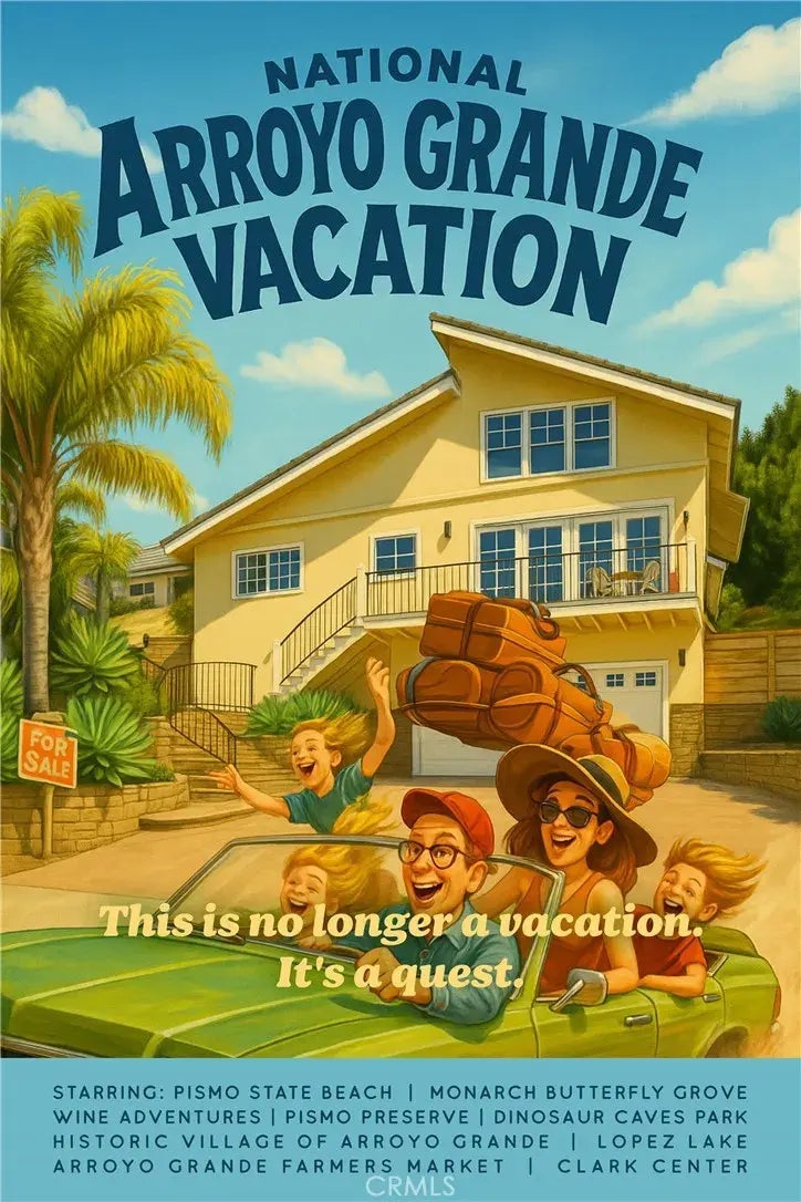 Welcome to this stunning modernized 3 bedroom, 2 bath vacation home just minutes to the historic Village of Arroyo Grande. featuring a spacious main living area on the second story, while the garage is located on the ground floor. This unique layout allows for beautiful views of the surrounding area from the upper level. Home is an active vacation rental which has 1 of the only 90 available vacation licenses in the city of Arroyo Grande and is transferable to the new owner. Take the unique opportunity to try before you buy and stay at this wonderful vacation home for a few days. Comes fully furnished and equipped as a turnkey vacation rental. The central location is a perfect home base to explore the Central Coast. Only 10 minutes to Pismo Beach, 20 minutes to San Luis Obispo and 15 minutes to Avila Beach!