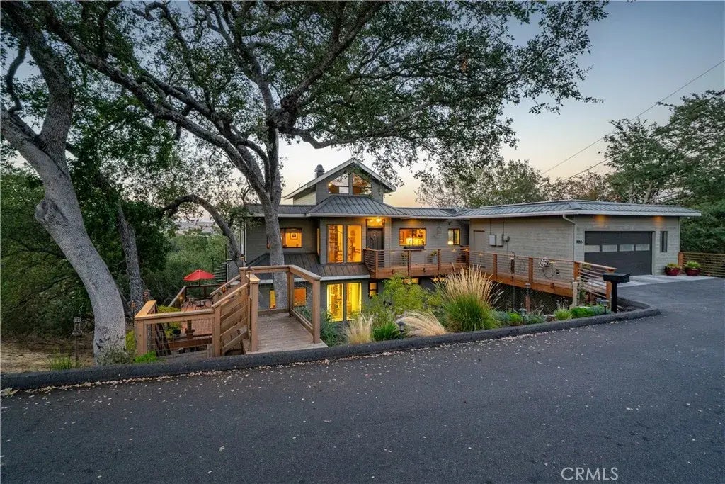 Welcome to Junipero Oaks Vista. Designed and built by renowned, award-winning sustainable builder Turko Semmes, this custom residence naturally balances elevated living and harmony with the land through its thoughtful and energy efficient passive solar design. Tucked within a private, oak-studded setting, the home captures sweeping views of the Salinas River Valley and rolling hills, while offering effortless access to the revitalized downtown Atascadero, world-class wine tasting in Paso Robles, and shopping in San Luis Obispo. Situated on a nearly one-acre parcel, the welcoming floor plan offers approximately 2,550 square feet of flexible living space with three spacious bedrooms, three well-appointed baths, plus a versatile loft. Stepping into the comfortable living and dining rooms you are greeted with Mahogany woodwork, stamped concrete flooring, curved wall details, a handmade candelabra, and the peaceful panorama created by front to back windows. With custom two-tone cabinetry with soft close features, quartz countertops, Bosch dishwasher, Frigidaire gas range, Whirlpool low profile microwave, and an included Samsung refrigerator, the centrally located kitchen is the social hub of the home. Glass French doors open to a media room with custom designed in wall surround sound speakers and Hunter Douglas window shades creating the perfect ambiance for watching a movie or hosting a game night. A tranquil retreat, the primary suite offers a sitting area, walk-in closet with organizers, en-suite bath, and access to a spa-ready deck. Two secondary bedrooms, each with sliding
