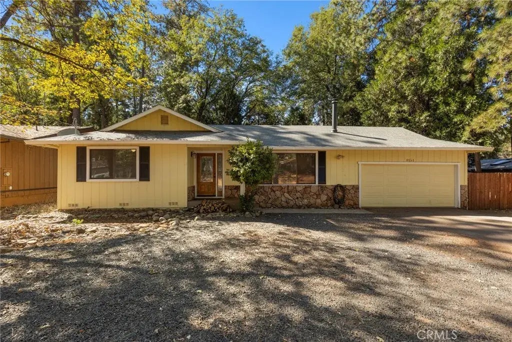 Ready to move in! Nestled in the pine-filled town of Magalia, this property offers everything you could ever need and more, including owned solar panels, a spacious bonus room, and a two-car garage. The features keep coming! Step inside and be instantly captivated by the beautiful laminate flooring, fresh interior paint, and large windows that frame serene outdoor views. The airy living area boasts a stunning floor-to-ceiling fireplace surrounded by unique stonework and built-in storage, adding to the bright and open feel. The fully equipped kitchen makes cooking a joy, featuring tile countertops, stylish white cabinetry, a dishwasher, and an electric range for easy meal prep. In the primary bedroom, you'll find dual closets, private access to the backyard, and an en suite bathroom with a large vanity and walk-in shower, offering a perfect retreat. But thats not all! The large bonus room can easily serve as a third bedroom, home office, or game roomyour choice. Additional highlights include ceiling fans throughout, recessed lighting, new flooring in the bedrooms, updated fixtures in the kitchen, dining area, and primary bedroom, a Culligan reverse osmosis filtration system, RV parking and a new 50-amp backup generator. Enjoy the fresh pine-scented air on the expansive back deck, ideal for quiet evenings or barbecues with friends. The fully fenced yard offers mature trees, a storage shed to fit all your gardening tools and plenty of room for outdoor fun. Situated in a peaceful neighborhood with a variety of amenities, this home truly has it all!