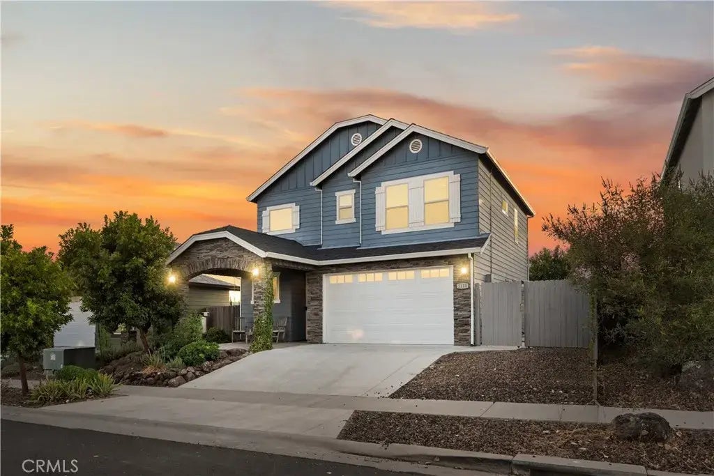 Immaculate, bright and move-in ready home in popular Oak Valley Subdivision featuring 14 panel owned solar system under the NEM 2 program for maximum energy savings. Meticulously maintained and graced with many wonderful features including calming interior paint throughout, luxury vinyl plank flooring in the main level living area, upgraded carpeting in the second level bedroom areas and ceiling fans throughout. The living area is highlighted by an open concept living room, kitchen and dining area. The kitchen features beautiful cabinetry, granite counters, breakfast bar and pantry. It also includes stainless appliances including gas range, microwave, refrigerator and newer dishwasher. Upstairs you will find three generously sized bedrooms with guest bathroom, a laundry room and linen closet. The primary suite is bright, private and spacious. The primary bathroom features a dual sink vanity, large walk-in shower and a walk-in closet. Outside you will find a beautiful and spacious backyard perfect for entertaining, play or relaxing. Features include a newly resurfaced PebbleTec patio and walkways, lush lawn, palm trees and an enclosed mature garden with apricot and apple trees, grapes and seasonal vegetable area. Other home features wide side concrete area, finished interior 2 car garage with PebbleTec flooring, tankless water heater, and smart home features. And for a power emergency it is plumbed for a generator to run off natural gas. Conveniently located and is close to Meriam Park, Hooker Oak and Bidwell Park, walking and biking trails. Make this your next place to call