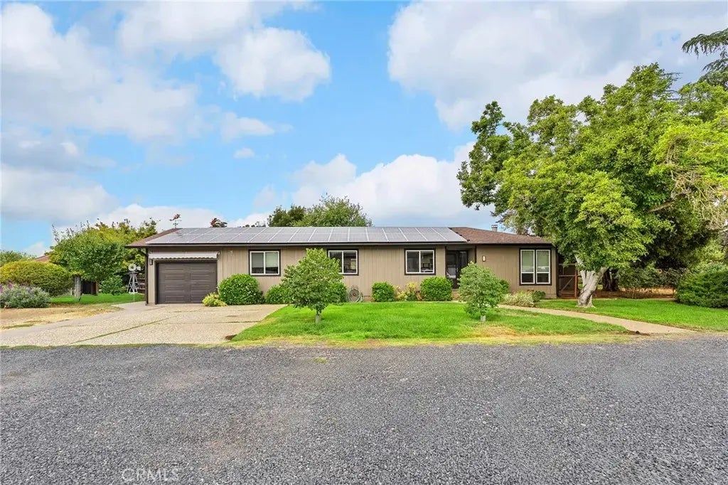 Ranch style home with barn workshop and additional detached 2 car garage. Owned 39 panel 15.6kWh solar energy system! Located in North Durham near Chico. This .95 acre property features a thoughtfully designed 2,288SF, 3 bedroom, 2 bath home with a gorgeous open concept kitchen and dining room, family room, den and indoor laundry room. Luxury Vinyl Plank flooring throughout. Both bathrooms and the kitchen have been tastefully updated. The primary bedroom suite includes a walk in closet and dual sink vanity. Sliding glass doors lead to the gorgeous back deck where the pool and hot tub are complimented by a massive fruit tree filled yard. Varieties include but aren't limited to apple, orange, apricot, peach, cherry, lime and avocado. The outdoor space includes grass areas, a peaceful water fountain and additional storage. The attached 1 car garage is currently being utilized as an art studio. The detached 2 car garage has a separate electric meter and 3 phase electrical. The rustic barn is the perfect place to restore a classic vehicle. It includes a car lift and is plumbed for a bathroom. There is ample space for all your toys and trailers. RV hookups with dump station. Huge fenced kennel. Remote operated entry gate.