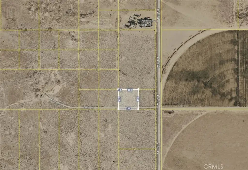 Great 2.57 acre land parcel! Located within the city of Lancaster boundaries, not the unincorporated county. This parcel has frontage on E Ave L2, which allows for easy access. It is only 1 parcel over from paved 70th St E. There are many farms in this area, as well as established ranch homes. It is very close to Plant 42, as well as established communities in east Lancaster. There are power lines along 70th St E. This is a great location to build a custom ranch home, install a mobile home, or hold for the future. This parcel is a great slice of the Antelope Valley. Great opportunity!