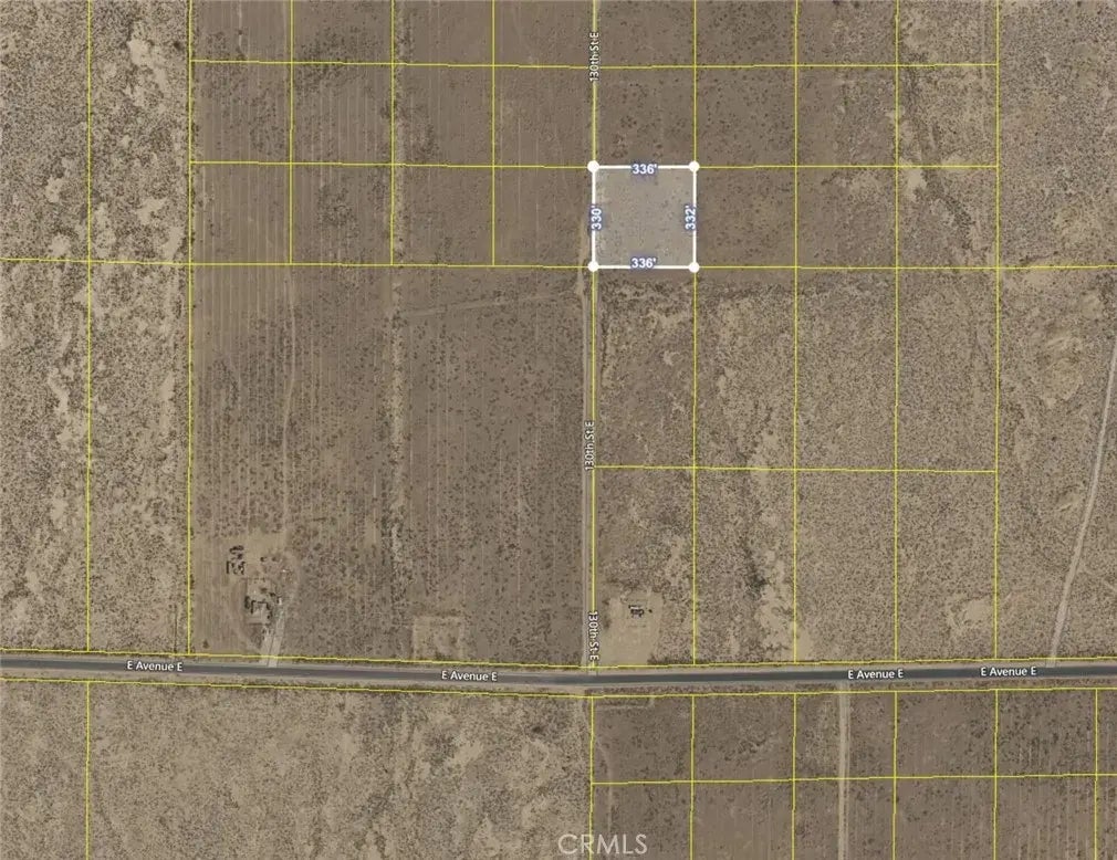 Great land parcel with frontage on 130th St E. Just off paved Avenue E. There are power lines running along Avenue E. There are also beautiful views of the buttes in this area. Avenue E is a major street that can take you to Sierra Hwy or the 14 Freeway. Just to the north of this property, at 120th St and Ave B, is the entrance of Edwards AFB. There are a number of homes and ranches in the area. This property provides a great opportunity to own a land parcel with street frontage, close to a paved street, for a low price. This is a perfect location to install a mobile home or even build a custom home. This property is the best of both worlds, as it is secluded while also being accessible. Great opportunity, don't miss out!