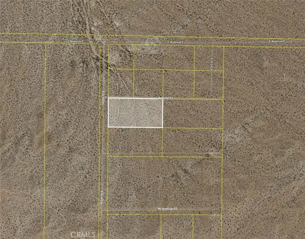 Great land parcel! Nearly 5 acres of land, on a corner lot with frontage on 165th St E and Ave E2. This street frontage makes it easy to access the lot and potentially build upon it. This parcel is a short drive from paved Ave G, and it's very close to Edwards AFB. Great land parcel to install a mobile home, live off the grid, camp, start a small farm, etc. Low price for nearly 5 acres. Don't miss out!