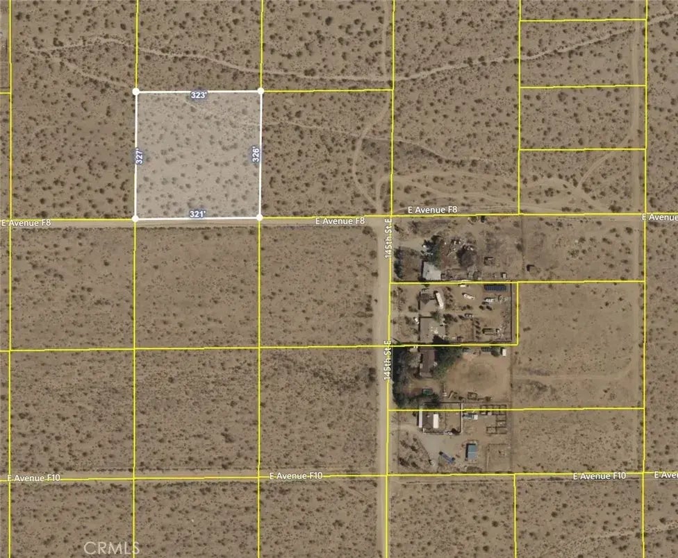 Buildable 2.4 acre land parcel, ready for a custom home! This land parcel has a lot going for it. It sits on Avenue F-8, which means it has direct street access and no need for easements. It is 1 parcel over from a cluster of house, and those houses have power lines (through SoCal Edison) and water lines (through LA County Waterworks) running to them. These utilities can be ran onto this property, which means there is no need for water wells or power generators. There are many ranch homes around this parcel. This parcel is very close to Ave G and 140th St E, both of which are paved streets. This parcel is also very close to the south gate of Edwards AFB. This parcel is the perfect opportunity for someone looking to easily build a custom home or install a mobile home and have lots of room left over for animals/farming, in an area that is secluded but not totally isolated, and without having to deal with a lack of utilities. Great opportunity!