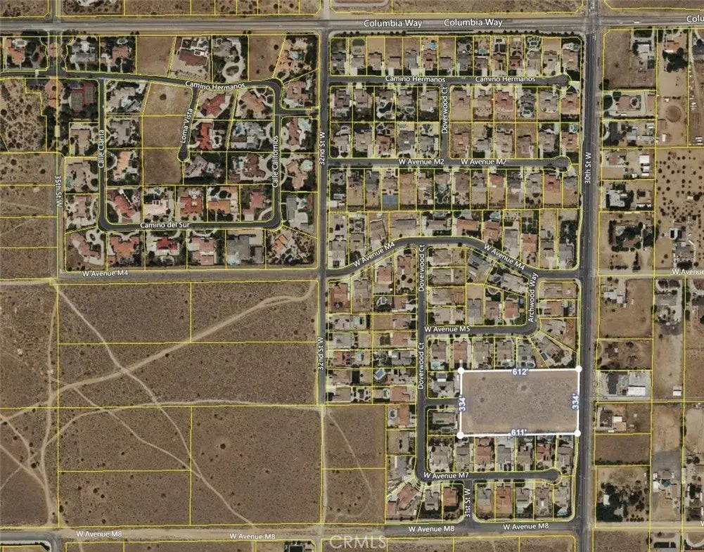 Development site in a million-dollar neighborhood. Seller will consider seller financing with 50% down! Located within Lancaster's ''semi-rural'' luxury corridor, this flat 4.69 acre land parcel has frontage on 30th Street West and is surrounded on 3 sides by the ''Premier Collection'' community. This is a highly desirable neighborhood of sprawling semi-custom single-story homes and impressive 2-story homes, most of which are over 4,000 sqft. Homes in this neighborhood are frequently selling for over $1,000,000. The subject property is a true ''in-fill'' lot, as it is the missing piece that would complete the Premier Collection. West Avenue M-6 is a stub street that terminates at the west side of the property, and it could be easily extended through this property to create a tract. Homes could then be built on each side of the street. The property owner previously obtained a tract map (TTM 66793), now expired, yielding 8 half-acre lots. A developer could therefore purchase this property, re-apply for the tract map, and build 8 estate homes that could sell for well in excess of $1,000,000 each. There is currently strong demand for luxury new homes in the Antelope Valley. Another option is for a developer to utilize the new ADU laws and build 16 ''build to rent'' homes on the 8 lots, which would be in very high demand due to the location. The seller also previously obtained a water letter, grading report, and environmental report. Water, sewer, gas, and electricity connections are all present. A water meter box appears to be present alongside 30th St. Paraclete High School, a
