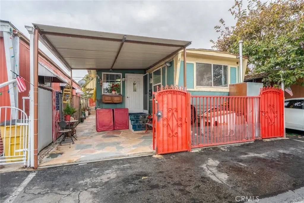 Located in the El Rancho Mobile Home Community, this well-maintained home exudes pride of ownership. A newly installed front gate and fresh pavers on the driveway enhance its curb appeal, creating a welcoming first impression. Step inside to an open living room that seamlessly flows into the kitchen, which features stainless steel appliances. The bedrooms are modest yet filled with natural light, creating a warm and inviting atmosphere. Additionally, a newly remodeled bonus room boasts a brand-new kitchen with stylish shaker style cabinetry, offering versatility. Conveniently situated just moments from local restaurants, shopping, schools, public transportation, and major freeways, this home offers both comfort and accessibility.