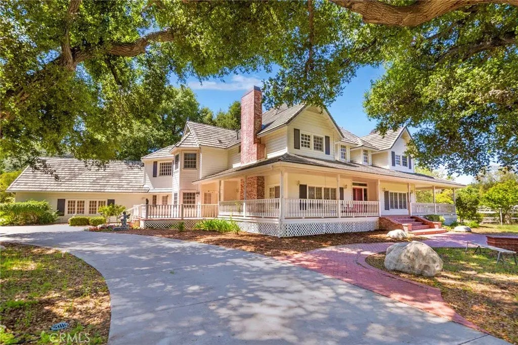 Beautiful Sand Canyon Custom gated estate home with guest house. Incredible flat land with over two acres of yard area and gorgeous Oak trees on the property. The amenities include gated main home with 5534 sq. ft. and 1299 sq. ft. guest home, a turnaround driveway, swimming pool and spa, private back patio & grass area, BBQ area, wine cellar, three car attached garage at the rear of the main house and two car garage at guest house. Peaceful front yard area with sensational pergola area spanning over 60 ft. The home has a classic wrap around front porch and a great floor plan that includes five spacious bedrooms and five bathrooms in the main house, two family rooms, hardwood floors, bar/library- game room, separate guest house with kitchen, two rooms-upstairs/office, bathrooms and a large entertainment or work out fitness room area below with a two car garage. The main kitchen is equipped with a Viking range, storage/cabinet space, breakfast bar area, stone counters and opens to family room with ample windows making it light and bright. Huge primary bedroom with bathroom large vanity area, soaking spa tub and sitting area. Spectacular private estate home in Sand Canyon with room to entertain and enjoy!