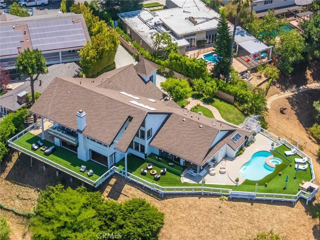 Nestled atop the prestigious, guard-gated Casiano Estates on Mulholland Drive, this newly remodeled luxury residence offers an exceptional blend of privacy, elegance, and sweeping panoramic views of both the Westside and the San Fernando Valley. Situated on over 32,000 sq. ft. of prime real estate, this home is meticulously designed to offer the ultimate in indoor-outdoor living. The expansive wrap-around patio with a built-in bar provides an ideal setting for entertaining, while the impressive 6,000 sq. ft. deck and pool area offer breathtaking 280-degree vistas. Featuring 4 spacious bedrooms and 4.5 baths, this home includes two fully remodeled bathrooms, and each bedroom is complemented by an ensuite for maximum comfort and privacy. The main-level master suite is a true sanctuary, featuring a generous walk-in closet and direct access to the pool, jacuzzi, and sauna. A gated driveway with a Ring security camera leads to a two-car garage, with additional parking for up to eight vehicles, accommodating oversized cars or RVs. Additional highlights include a wine cellar, an outdoor shower with an adjacent washer and dryer, and close proximity to Stephen S. Wise Temple. Updated in 2022, this Bel Air estate embodies the pinnacle of luxury living, offering unparalleled location, design, and amenities in one of Los Angeles most coveted neighborhoods.