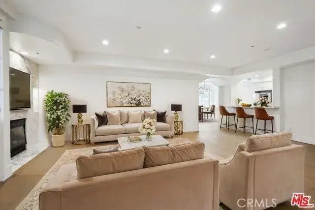 This desirable Westwood luxury condo is spacious, stunning and completely renovated like new! The expansive 2030 SQFT modern open floor plan is well balanced including great room with fireplace that opens to a front facing patio. Dining room adjacent to kitchen opens to oversized patio, which encompasses the entire length of the unit, and makes for great al fresco dining/entertaining. Kitchen w/high end stainless steel appliances, and both kitchen and all bathrooms with polished porcelain counter tops. Spacious primary bedroom suite with fireplace, walk-in closet w/built-ins, and opulent attached bath, featuring frameless shower door, freestanding tub, LED mirrors. Secondary bedroom and addition full bathroom off hall. Additional features include new wide plank wood floors, dual pane windows/doors, recessed lighting, white shaker doors, side by side laundry closet, and so much more. Building has a community gym and guest parking. Great proximity to Westfield Century City mall, Westwood Village and UCLA.