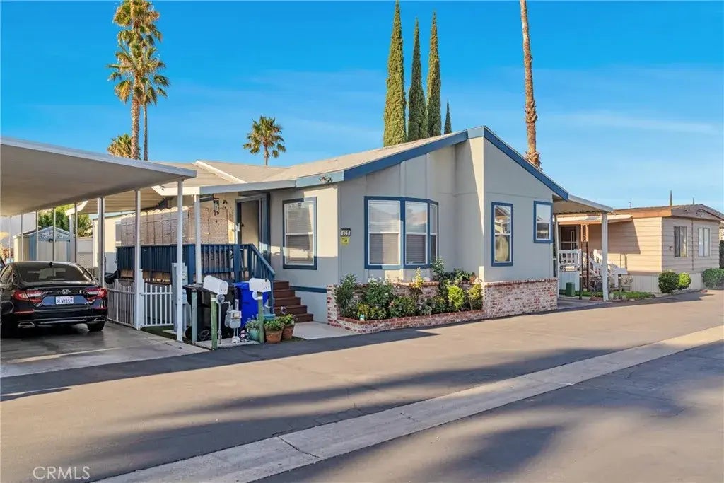 Welcome to Parklane Estates! This charming 4-bedroom, 2-bathroom manufactured home built in 2008 offers approximately 1,548?sq?ft of thoughtfully upgraded living space. Step inside from an inviting front deck into an unexpectedly spacious living room. The well-appointed kitchen features stylish tiled counters, white cabinetry, a new backsplash, a large island with storage, stainless steel appliances, a pantry, and a cozy breakfast area. An adjacent laundry room, complete with shelving, opens into a 4-car carport. A formal dining room has been enclosed and lends itself perfectly as a home office or extra bedroom. The soaring bedrooms are well-sized, with the master suite boasting a walk-in closet and luxurious en-suite bath complete with His and Hers vanities, soaking tub, and walk-in shower. Residents enjoy access to park amenities including two pools, a tot lot, basketball court, clubhouse, and guest parking. Situated in scenic Canyon Country, you're just moments from schools, shopping, dining, and mountain trails. This property is situated on leased land with monthly lease terms.