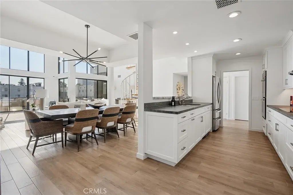 This light filled and spacious penthouse is defined by soaring cathedral ceilings, a modern fireplace and floor to ceiling windows that flood the home with natural light. Fully renovated with meticulous attention to detail, the residence has been reimagined with a modern sensibility, featuring low VOC paint, nontoxic flooring and automatic window shades that enhance both comfort and style. The chefs kitchen is a true centerpiece, offering custom cabinetry, abundant storage and an expansive layout that flows seamlessly into the open concept living and dining areas. Designed for both entertaining and relaxation, this space is as versatile as it is inviting, with a spacious balcony perfect for savoring the glow of Southern California sunsets. Upstairs, the top floor bedroom and loft offer incredible versatility and possibilities, ideal as a guest suite, private office, screening room or seductive lounge, and connect to your own rooftop deck where sweeping city views, star filled nights and the Hollywood Sign become your nightly backdrop. Two additional bedrooms, including a tranquil and large primary retreat with two large custom built out closets and double sinks, provide the perfect balance of privacy and indulgence, complete with spa inspired finishes for everyday luxury. Resort style amenities elevate the experience, including a sparkling pool, spa, sauna, billiards and recreation rooms, along with the rare benefit of side by side parking. Just minutes from Westwood Village, UCLA, Century City, Brentwood and Santa Monica, this exquisite penthouse condo offers a lifestyle w