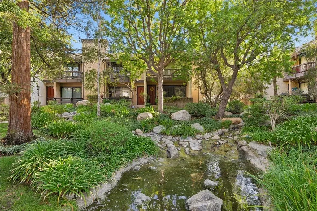 Welcome to Warner Village, where your dream tri-level townhouse awaits! This charming end unit boasts three spacious bedrooms and two and a half bathrooms, perfectly designed within an open floor plan that spans 2,022 square feet. Located in a tranquil location, youll enjoy picturesque views of serene streams, and refreshing pools with running water right next to the front door. Step inside to discover a bright living room featuring high ceilings and a cozy fireplace. The kitchen is a chef's delight with elegant granite counters, a delightful balcony, and a convenient eating area. Entertain guests in the formal dining room that leaves a lasting impression. The upstairs bedrooms are generously sized, with the primary bedroom offering a luxurious walk-in closet and its own private balcony. Plus, a versatile utility room provides the perfect space for an office or guest room. The HOA includes water earthquake insurance cable and the internet. The B tax rolls indicate 1,631 square feet, however the builder floor plan was measured as 2022 Sq Ft including the bonus room. Buyer to verify the square footage. One year old air conditioner. New electrical panel. Enjoy the shopping,restaurants,parks and easy access to nearby freeways and beaches.
