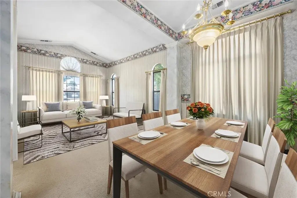 Located on a desirable cul-de-sac, this 3-bedroom, 2-bath, 1,604 sq. ft. home features a thoughtful layout that blends formal and casual living spaces, offering the flexibility to entertain guests in one area while enjoying everyday comfort in the other. The front living and dining areas showcase vaulted ceilings, large windows, and abundant natural light, creating an airy and open feel. The family room is anchored by a cozy brick fireplace and flows seamlessly into the kitchen, where a spacious breakfast bar and plenty of cabinetry provide ample room for meal prep and gatherings. Sliding glass doors open to the backyard, extending the living space outdoors. With its thoughtful layout and multiple areas to entertain or relax, this home offers a flexible design to fit your lifestyle.