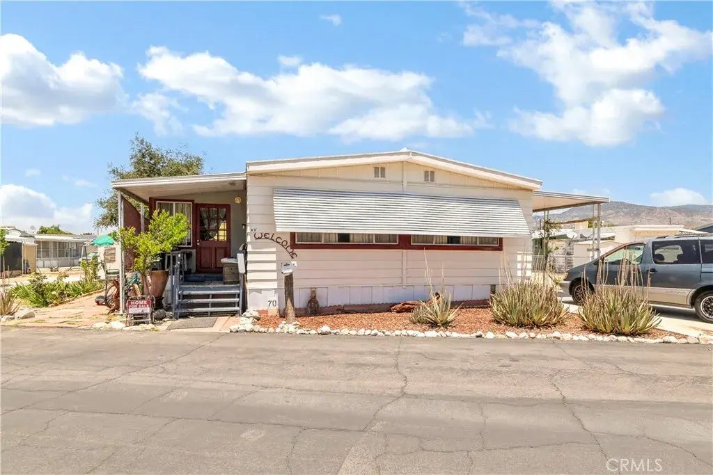 Welcome to Fairview Park Mobile Home Estates! As you walk in you get the feel of real rustic style, from the fun decor in the front yard into the closed in porch that trails the the length of the home. The living room dinning room is opened up to and wraps into the kitchen. You have one bedroom that leads to the porch and and nice sized guest bathroom in hall, going all the way to primary bedroom that is very spacious with a dressing area and bathroom attached, and includes a door to a quaint little porch and patio in the back area of the property! Plus the home is full of great storage solutions! It's got a got a newer swamp cooler, a home warranty that's transferable and so much character! The park has many amenities, a pool, a hot tub, banquet room with full kitchen for your use or a community gathering, a library, a laundry facility and more storage. Close to several lakes, Soboba Casino and Event Center, Idyllwild Mountain, and the infamous Temecula Wine Country, as well as shopping and restaurants, all while enjoying country living!