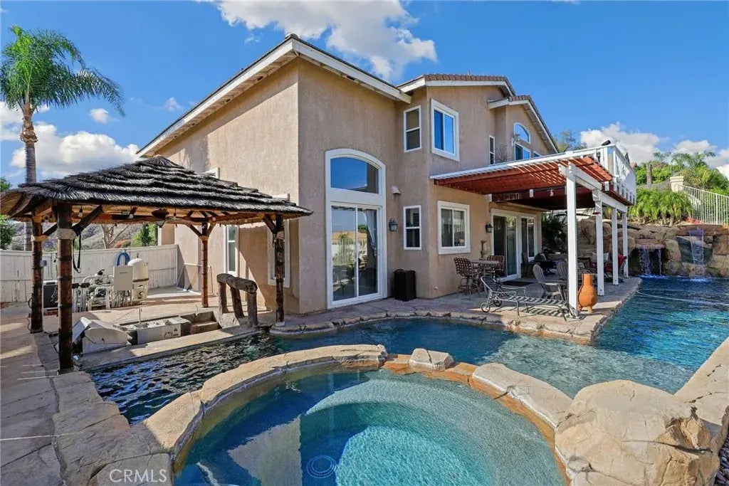 A Spectacular 5 BD/3 BA Oasis in the prestigious Tuscany Hills Community with Captivating Views! Discover your dream home where luxury living meets modern convenience. This stunning residence boasts a generous 0.33-acre lot and welcomes you with double iron front doors that open to a spacious and inviting living area, complete with soaring ceilings and elegant formal dining room. Relax and unwind in the family room, where a fireplace creates the perfect ambiance. Natural light bathes the open family room and chef's kitchen, which features top-of-the-line stainless steel appliances and an eat-in bar. For seamless indoor/outdoor entertaining, a large sliding glass door connects the family room to the entertainer's backyard. The primary suite is a true retreat, offering breathtaking views, a generously sized patio with a sliding glass door, and an ensuite spa-like bathroom with a soaking tub, double vanity, and a glass-enclosed shower. This home boasts an impressive array of upgrades and features, including fresh interior paint, copper repiping for the tankless water system, 18 Hanwha Q Solar Panels, a High-Efficiency Goodman Brand (18 SEER, 2-stage, 5-ton) HVAC system ensuring year-round air conditioning comfort, new grill vents for the AC, as well as Chilipepper Hot Water Recirculation Pump for rapid water heating, electrical setups for TV install in 4 spaces, upgraded mini blinds in 2 rooms, Schlage Alexandria knobs, adapter outlets with GFI, recessed lighting, a laundry room w/sink, balcony wood-tile floors, and a remodeled storage room! All bathrooms have also been update