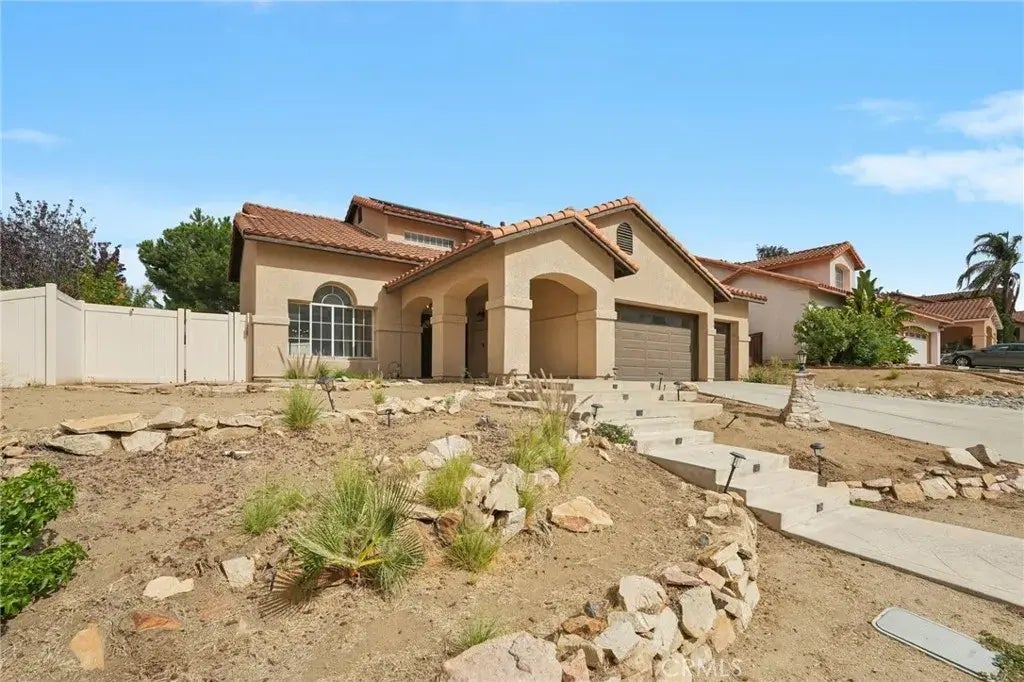 This stunning pool home offers beautiful curb appeal with manicured landscaping and is perfectly situated in a desirable neighborhood with no HOA. Go inside to find soaring vaulted ceilings, vinyl flooring, and a bright, inviting floorplan. At the heart of the home is the gorgeous kitchen featuring quartz countertops, seamlessly connected to the formal living and dining areas as well as the cozy family room with fireplace. French doors lead out to the backyard oasis where youll enjoy a sparkling pool and spa, expansive patio space, and vinyl fencing for privacyperfect for relaxing or hosting gatherings. The spacious primary suite provides a peaceful retreat with fireplace and en suite bathroom, while additional highlights include indoor laundry, a 3-car garage with large overhead storage, and thoughtful updates throughout. With OWNED solar for energy savings, no HOA, and beautiful outdoor living, this home is a true gem.