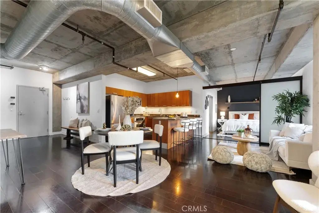 Welcome to Market Lofts, a modern mid-rise condominium nestled in the heart of Downtown LA. This upscale 2-bedroom, 2-bathroom unit boasts wood flooring throughout and beautifully tiled bathrooms. Each spacious bedroom offers the luxury of a walk-in closet and a private bathroom, ensuring comfort and privacy. Upon entering, you'll be greeted by a generously sized foyer with laundry closet that leads to an inviting living and dining area, complemented by a modern kitchen featuring a convenient peninsula for casual dining. Market Lofts ensures a secure environment with 24-hour entry security and concierge services, elevating your living experience. Indulge in the array of exclusive amenities including a sparkling pool, a chic clubhouse with a fully-equipped kitchen, a state-of-the-art fitness center for wellness enthusiasts, a sophisticated billiard room, picturesque BBQ areas, and a private theater room for entertainment. The prime location offers unparalleled convenience, granting easy access to esteemed retailers such as Ralphs, Whole Foods, Target, Starbucks, plus so much more including seamless connectivity to public transportation networks. Whether it's for work or leisure, Market Lofts offers an ideal blend of convenience and luxuryan opportunity not to be missed! And just in time for a front row seat to the 2026 WORLD CUP AND THE 2028 SUMMER OLYMPICS!