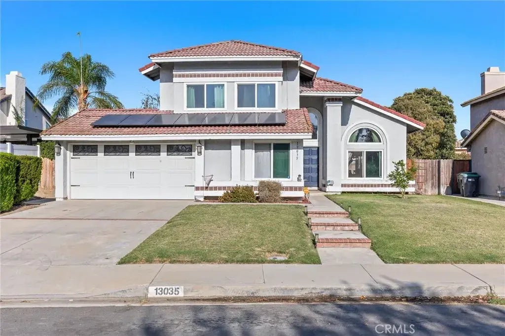 Welcome to this beautiful two story home featuring 4 bedrooms, 3 full bathrooms, and 1,971 sqft of living space. The property includes a spacious 2-car garage and a thoughtfully designed floor plan that balances comfort and functionality. The first floor features a bedroom and full bathroom, ideal for guests or multi-generational living. A bright living room with vaulted ceilings fills the home with natural light, while the large family room and formal dining areas provide plenty of space for entertaining. Upstairs, the primary suite is a true retreat with walk-in closet, and a spa-like bathroom complete with dual vanities, soaking tub, and separate shower. Two additional bedrooms and another full bathroom complete the second floor. Enjoy outdoor living in the expansive backyard, featuring a covered patio, heated in-ground pool, and relaxing spa, perfect for gatherings, barbecues, or simply unwinding. Theres also plenty of space for kids and pets to play. Additional highlights include 31 solar panels for energy efficiency and long-term savings, along with a security system for added peace of mind (to be assumed by the new owner). This home combines comfort, space, and lifestyle, all in a desirable Chino neighborhood. Dont miss the opportunity to make this wonderful property your new home!